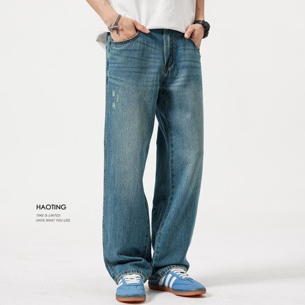 豪霆.夏季薄款莱赛尔牛仔裤男士宽松直筒水洗复古破洞阔腿休闲裤