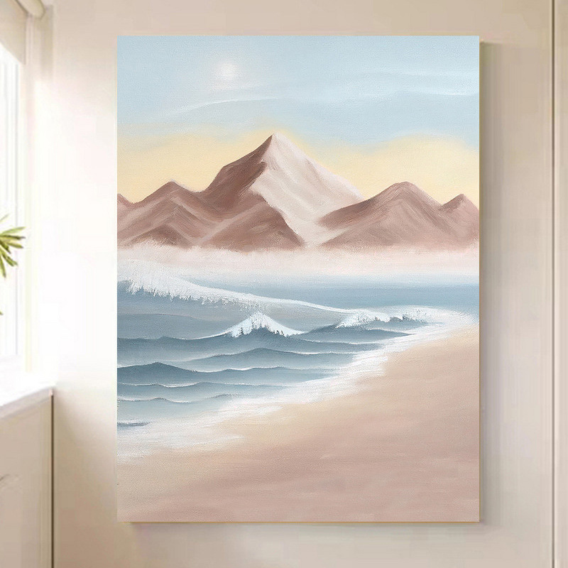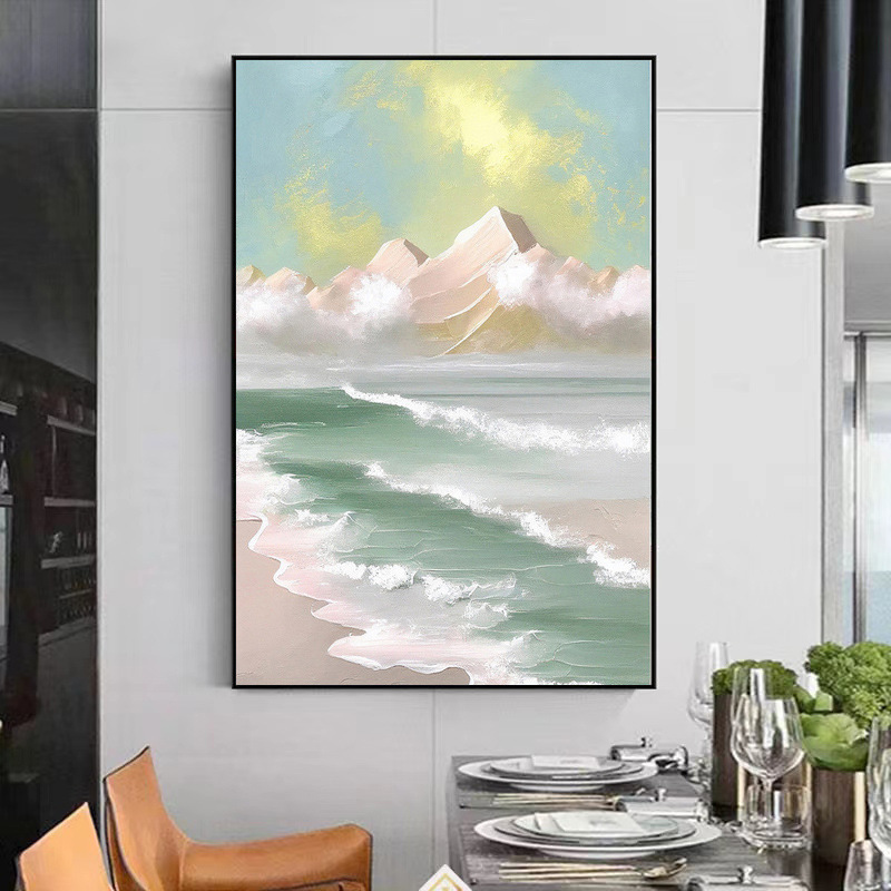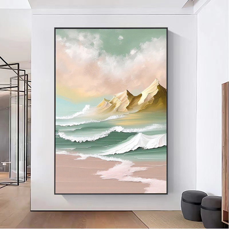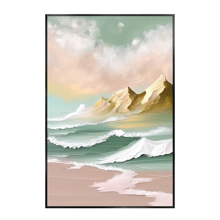 纯手绘油画日出山脉沙滩客厅竖版装饰画沙发玄关壁画抽象简约卧室