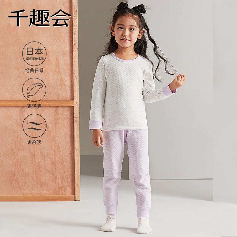 千趣会冬季男女童秋衣秋裤束口防风绗缝加厚内衣套装