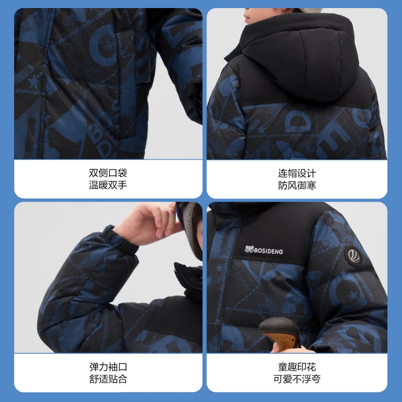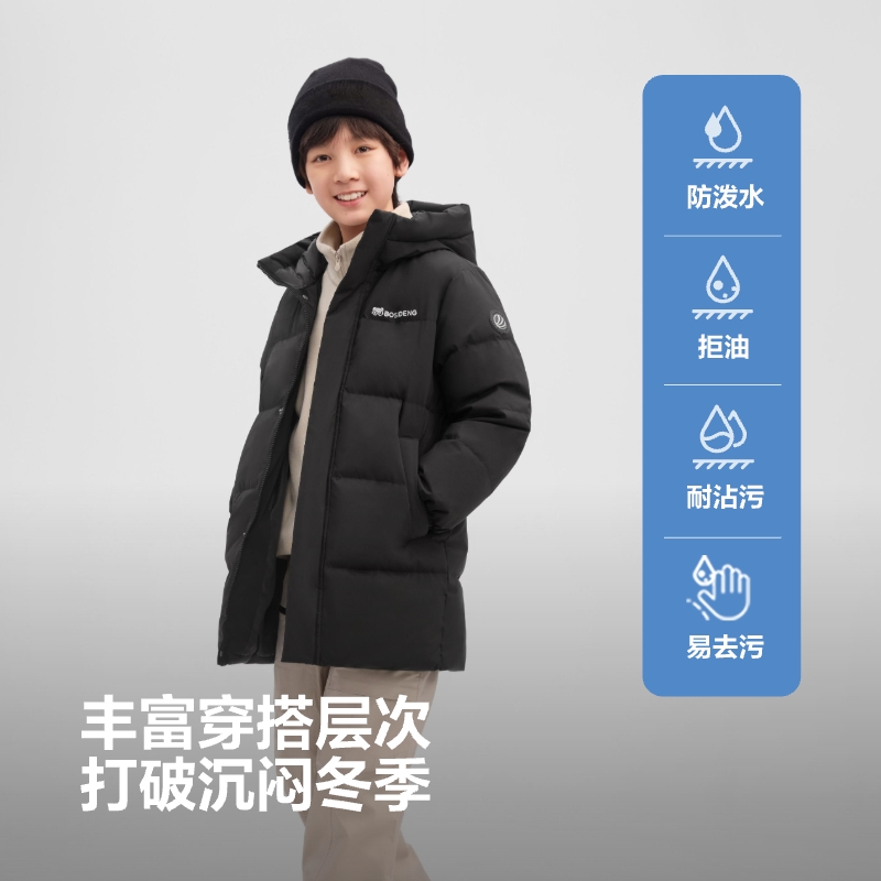【25冬新品】波司登儿童羽绒服男童中长款连帽运动羽绒服四防加厚