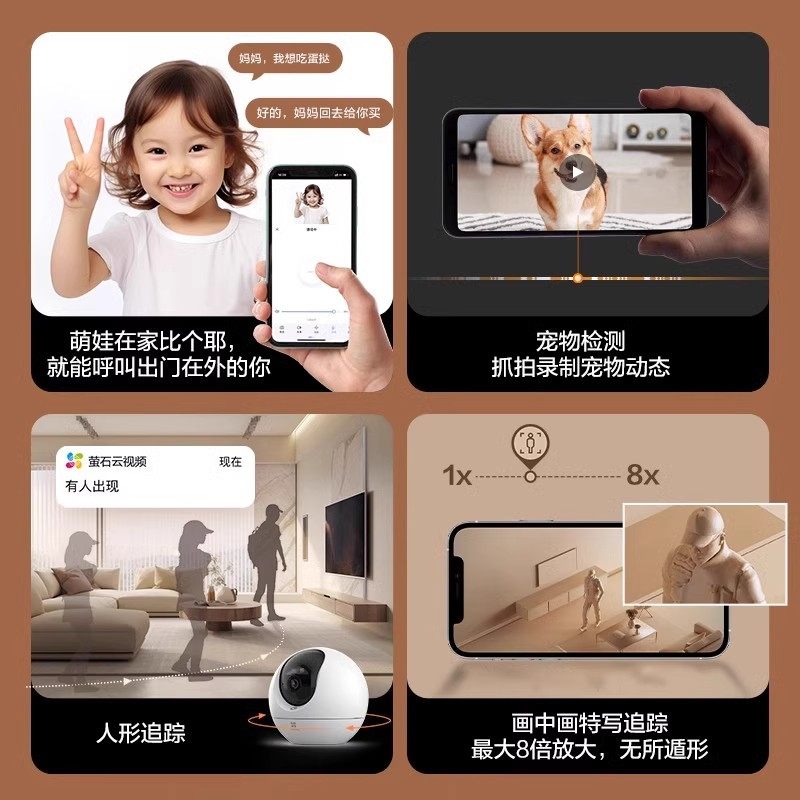 萤石云C6C800万高清4K智能监控摄像头家用远程wifi室内AI夜视全景