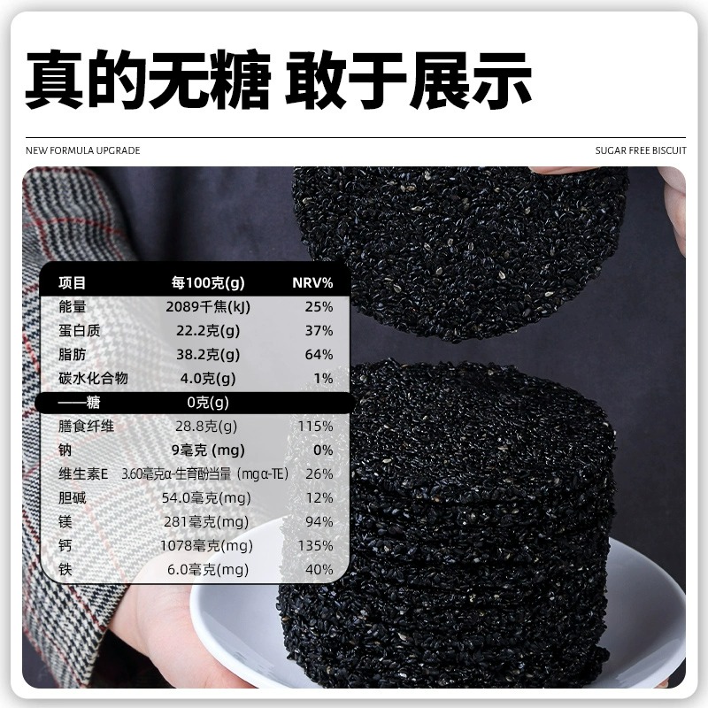 无糖黑芝麻饼孕妇糖尿人儿童老人控糖零食品专用