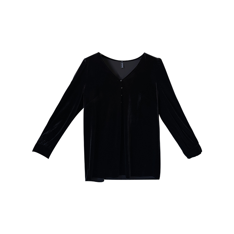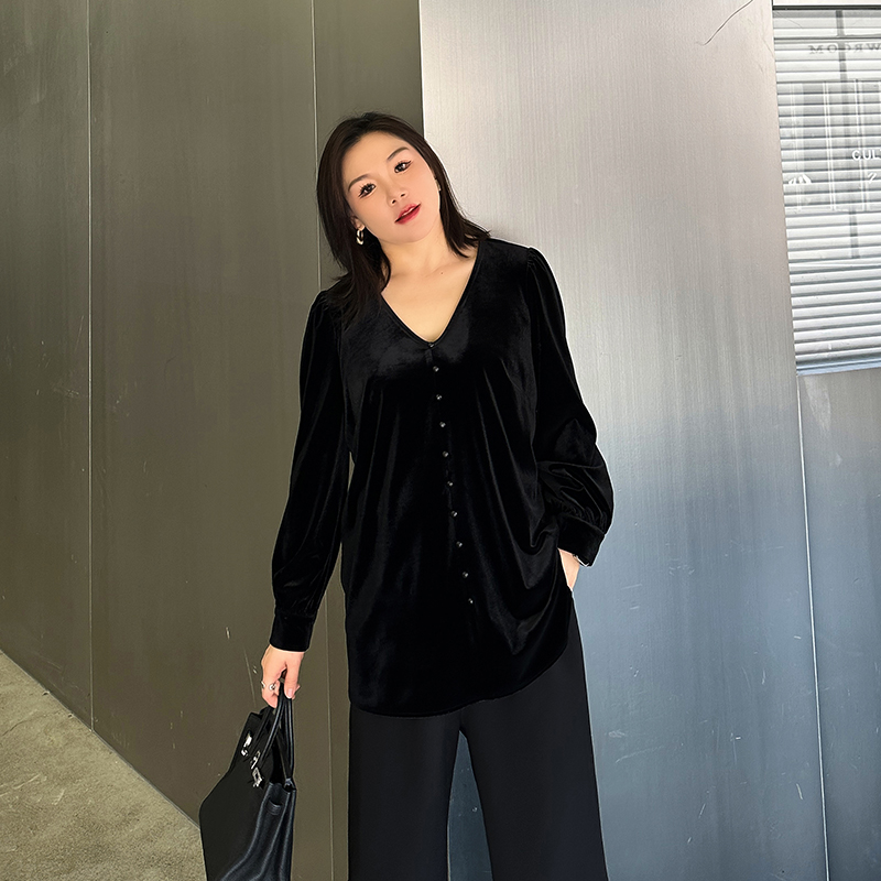 心存真大码女装丝绒衬衫2024年秋冬新款胖妹妹mm宽松V领气质上衣
