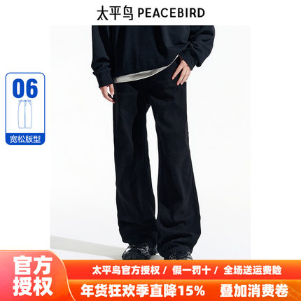 【商场同款】太平鸟男装 2025年冬季黑色宽松牛仔裤B1HAE410B