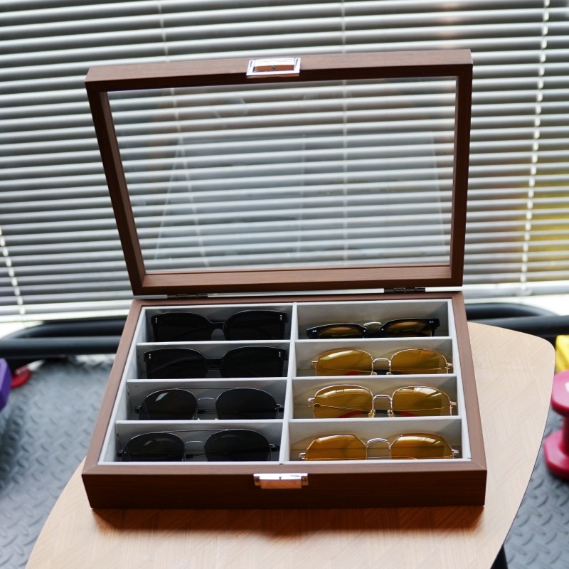 眼镜收纳盒太阳镜墨镜多格展示架高档木纹防尘便携式眼睛陈列架子