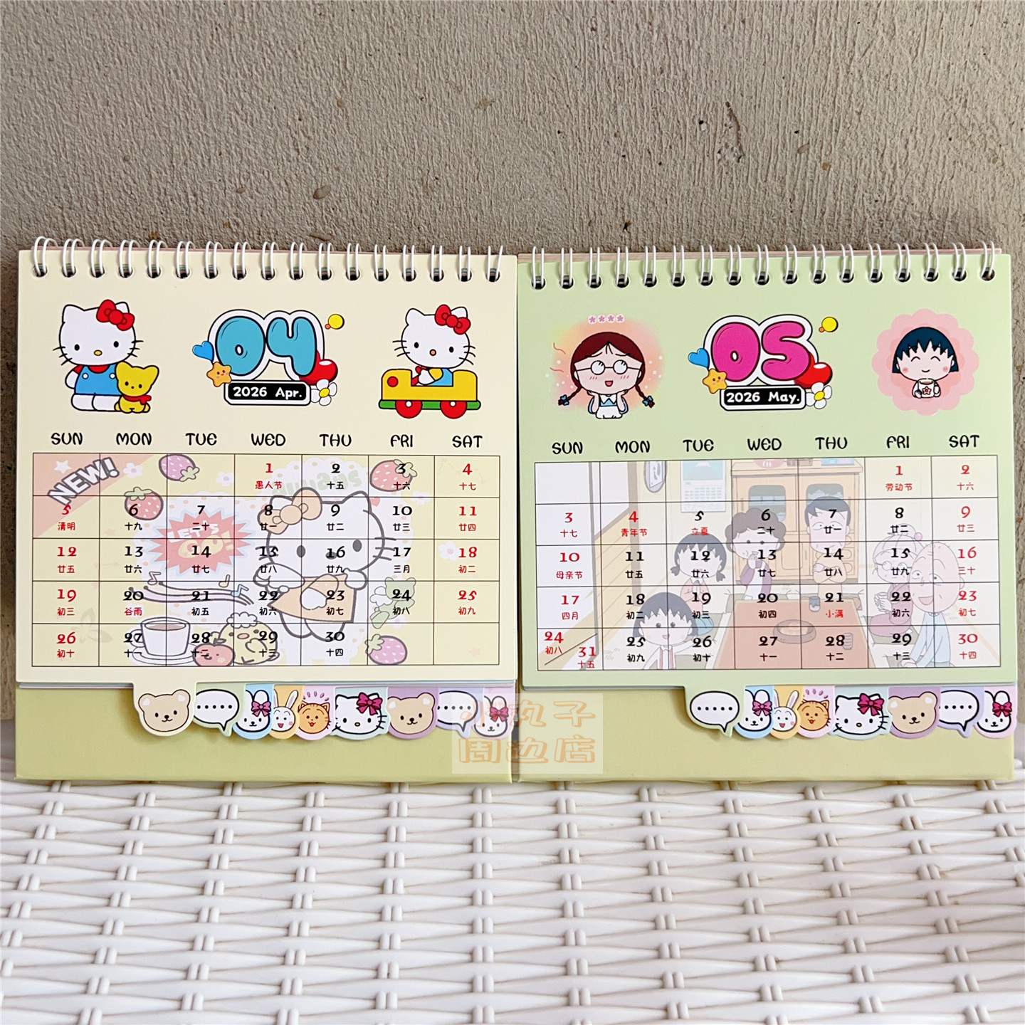 怀旧复古樱桃小丸子hellokitty梦幻联动2026年日历桌面摆件台历
