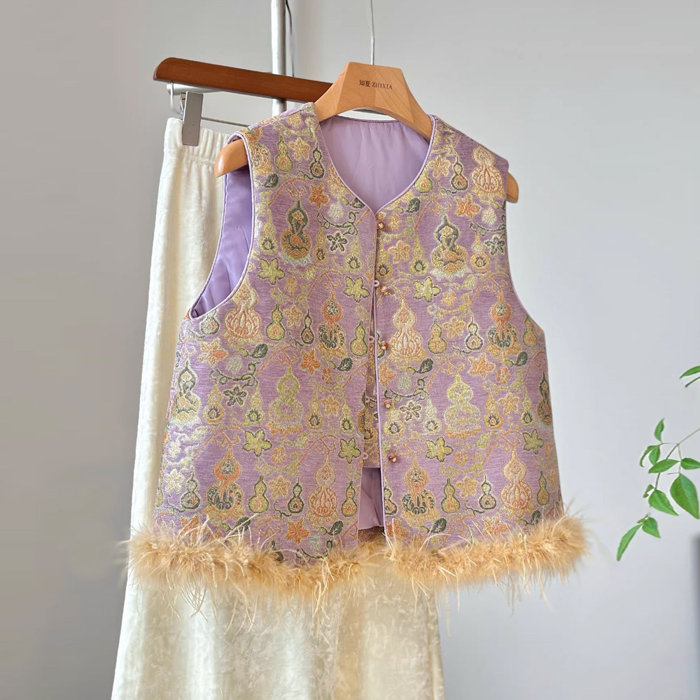 高级感减龄洋气新中式夹棉马甲女冬季保暖外穿鸵鸟毛背心叠穿国风