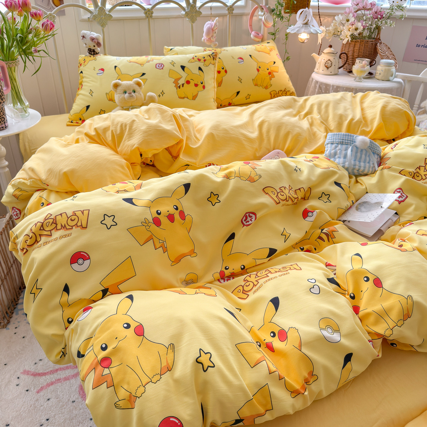 A类水洗棉柔软四件套卡通儿童床品学生宿舍三件套被套床单床笠男