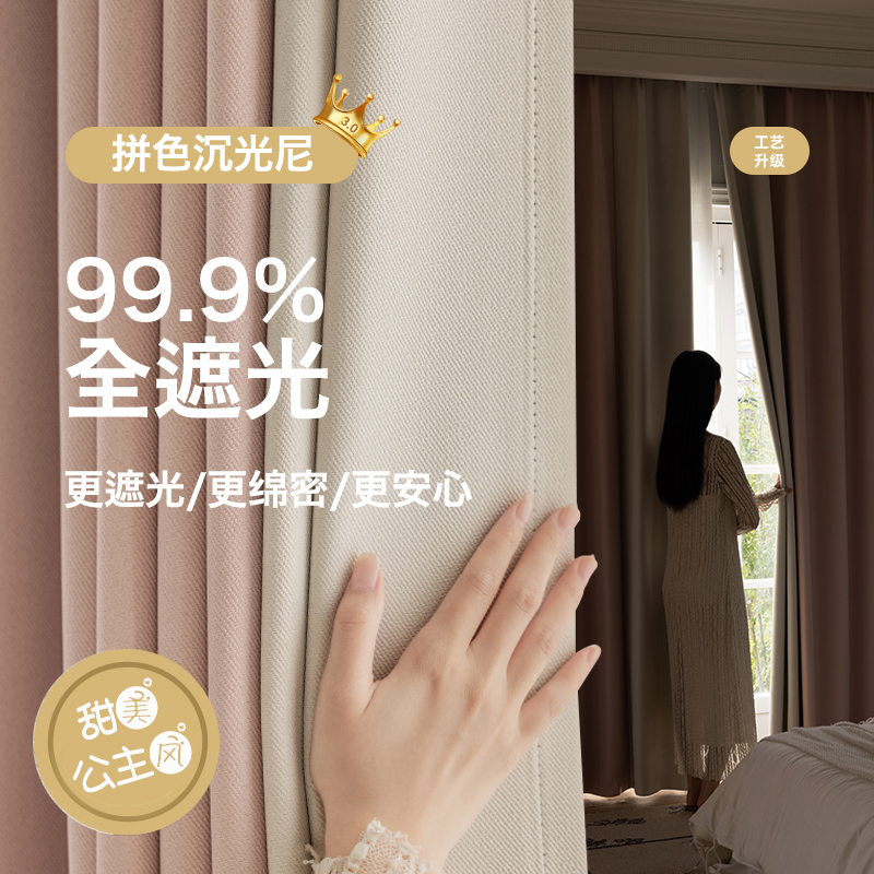 超高加长拼色公主风少女全遮光窗帘成品自建房别墅客厅卧室落地式
