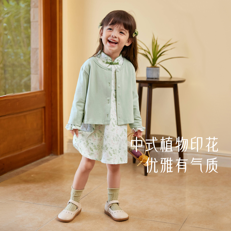 女童连衣裙春秋5儿童两件套新中式碎花春小童秋装洋气2岁宝宝裙子