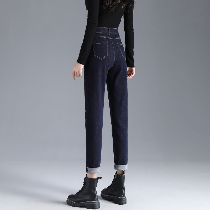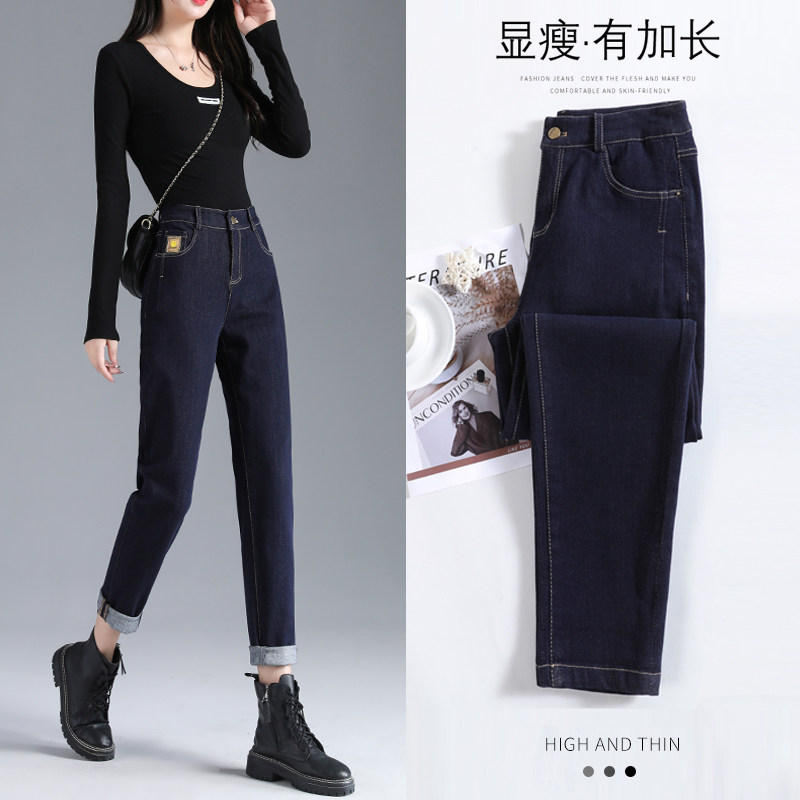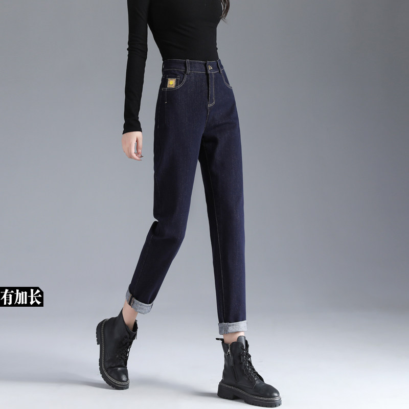 加长牛仔裤女春秋宽松2022年新款高腰哈伦裤高个子长裤显瘦老爹裤