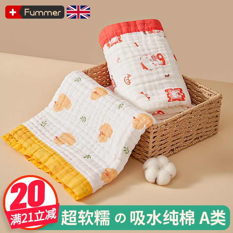 婴儿浴巾初生宝宝盖毯a类6层纱布超软吸水新生儿包洗澡毛巾被