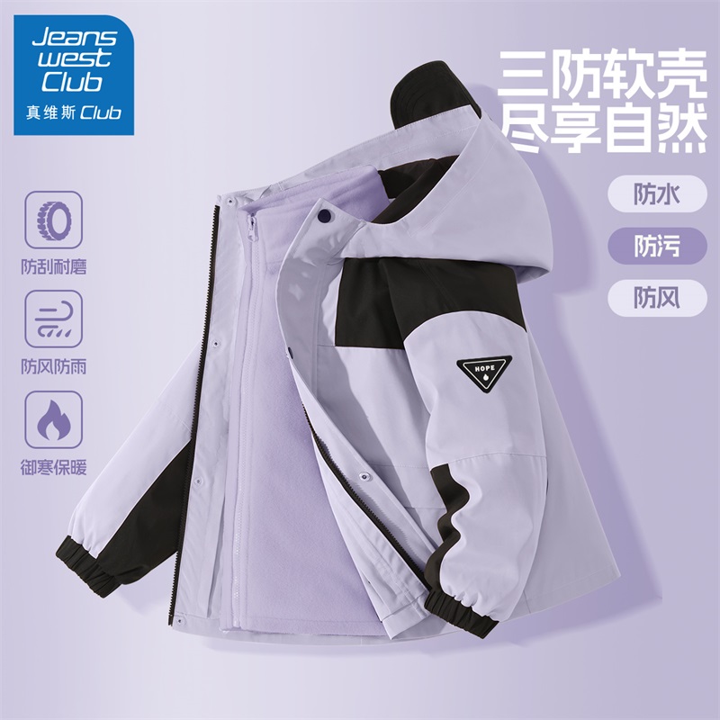真维斯女童冲锋衣三合一秋冬2025新款儿童加绒三合一外套女孩秋装