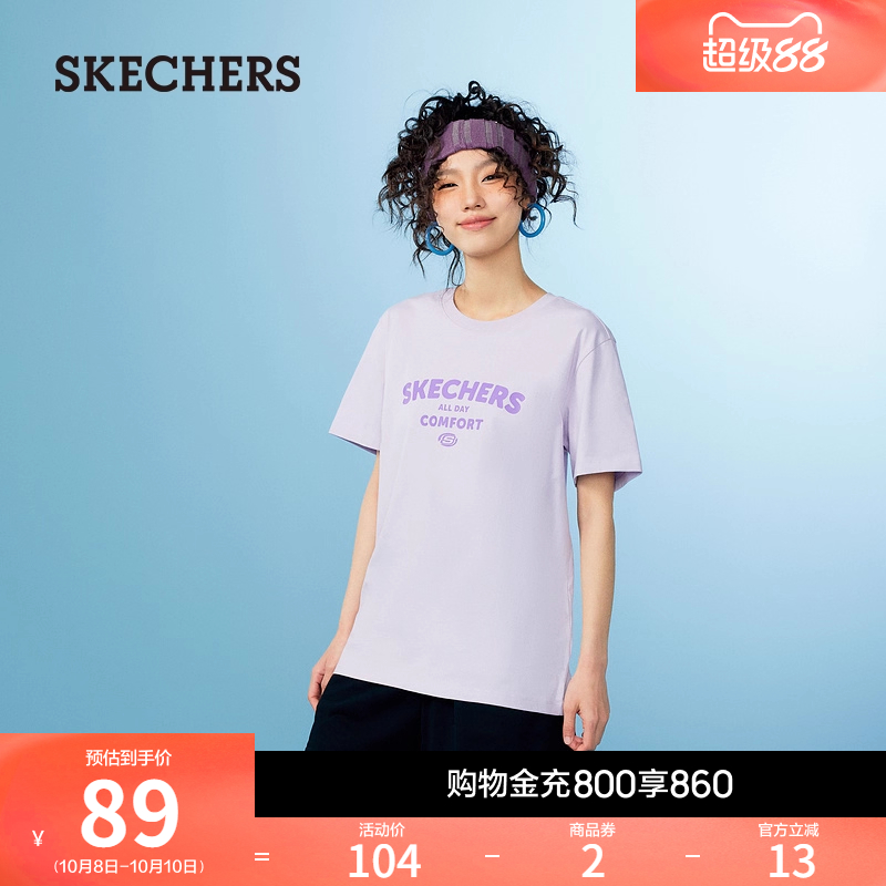 Skechers斯凯奇夏季女男情侣同款舒适百搭短袖休闲T恤运动打底衫
