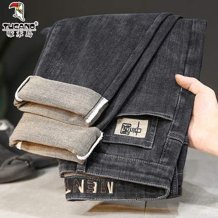啄木鸟2025秋冬新款牛仔裤男宽松弹力小直筒修身欧版潮牌加绒男裤