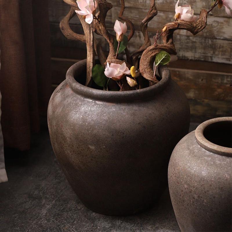 景德镇陶瓷大号插花花瓶客厅复古摆件现代简约手工落地陶罐大花盆