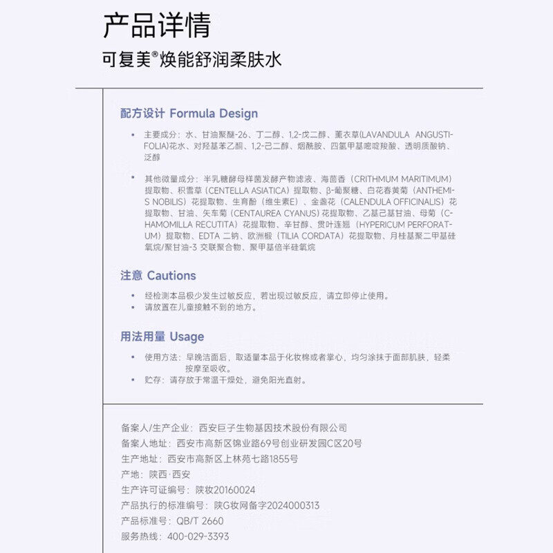 可复美 柔肤水补水保湿舒缓修护敏感湿敷平衡舒缓肌肤爽肤500ml