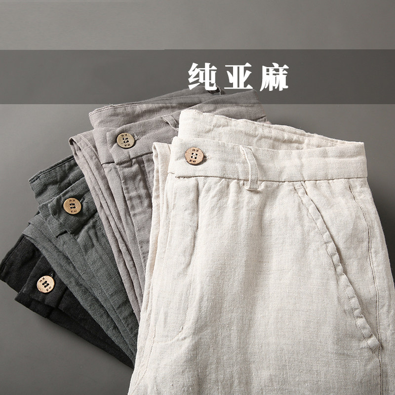 亚麻裤男夏季薄男士休闲裤