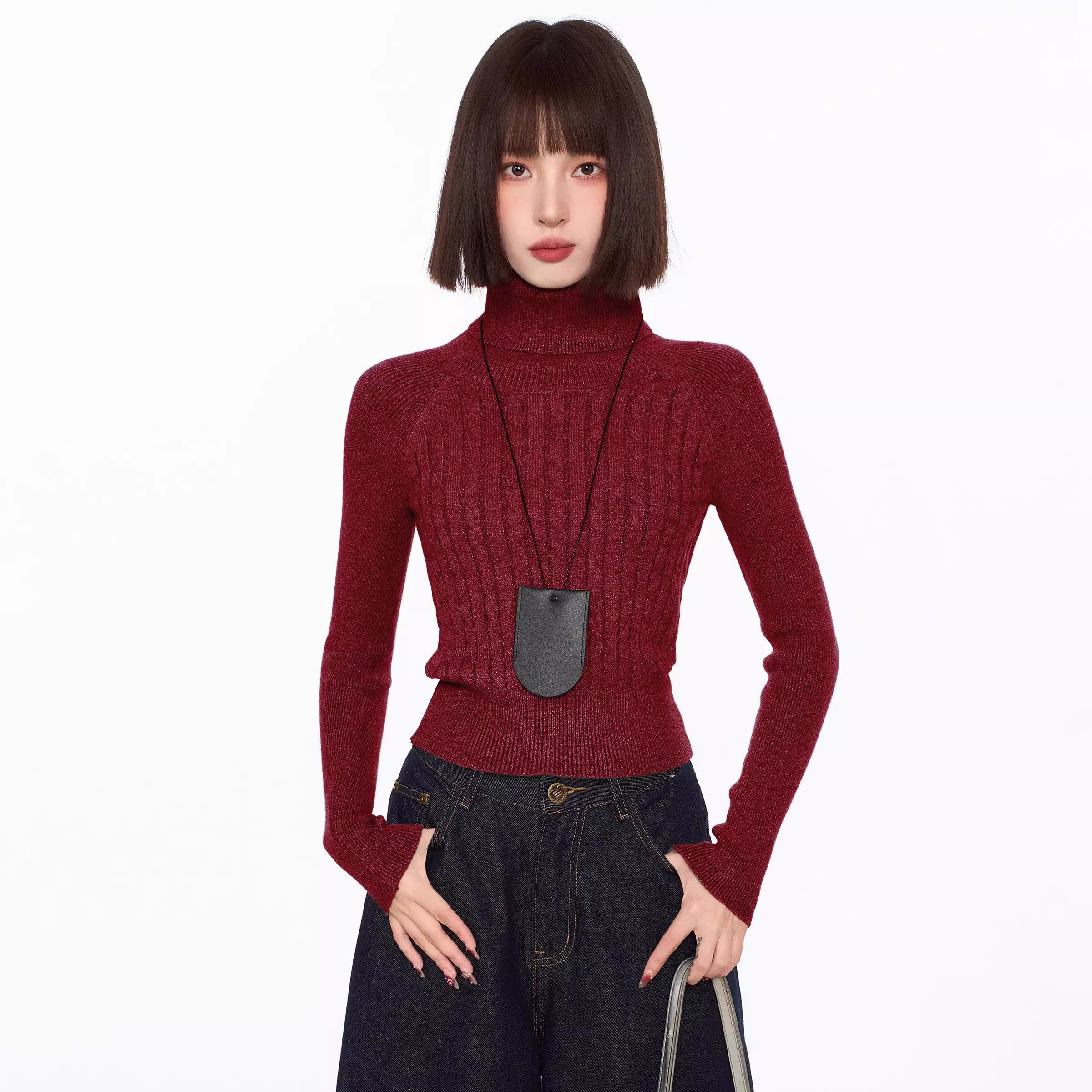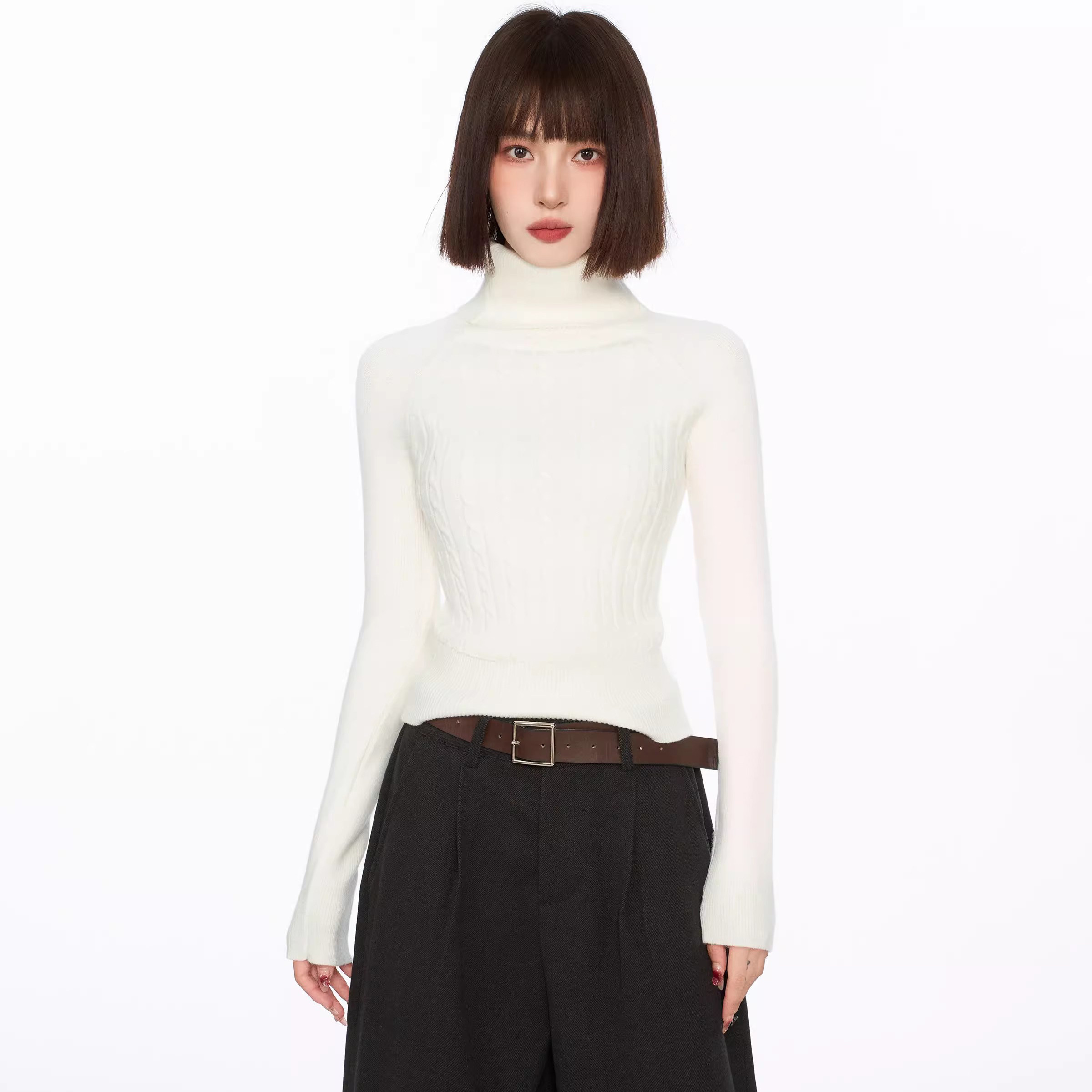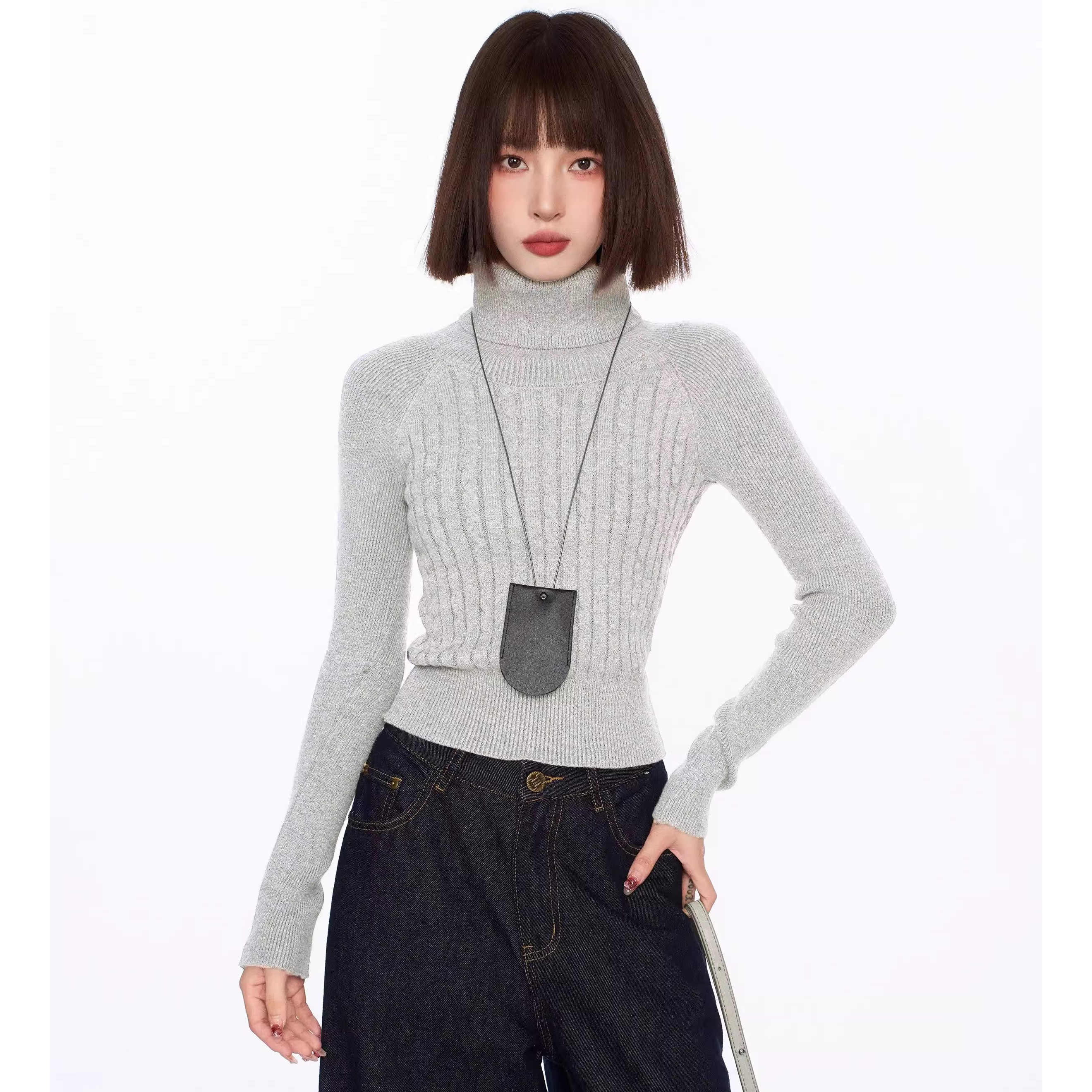 韩系高领麻花针织衫女2025秋冬季新款修身套头毛衣短款灰色打底衫