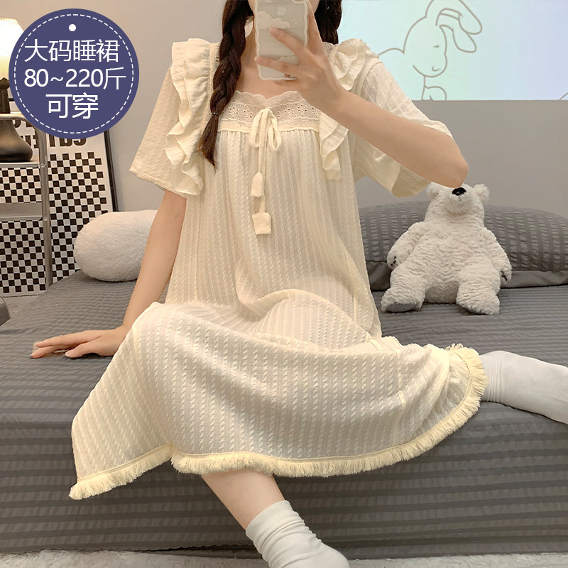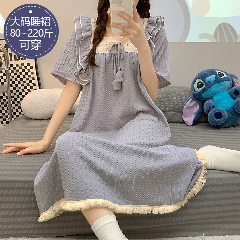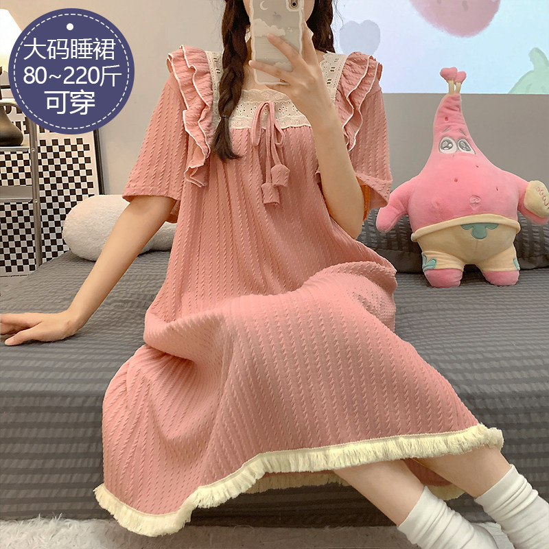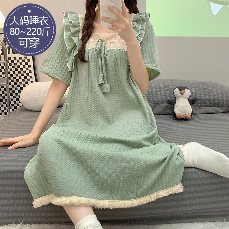 睡裙女夏季短袖纯棉薄款可爱公主风加肥加大码胖mm孕妇睡衣家居服