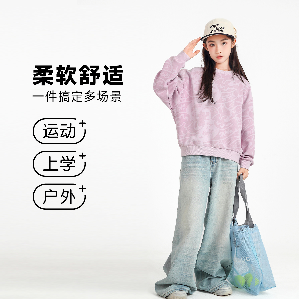 2025秋季新款女童圆领卫衣中大童小女孩洋气上衣儿童休闲潮初中生