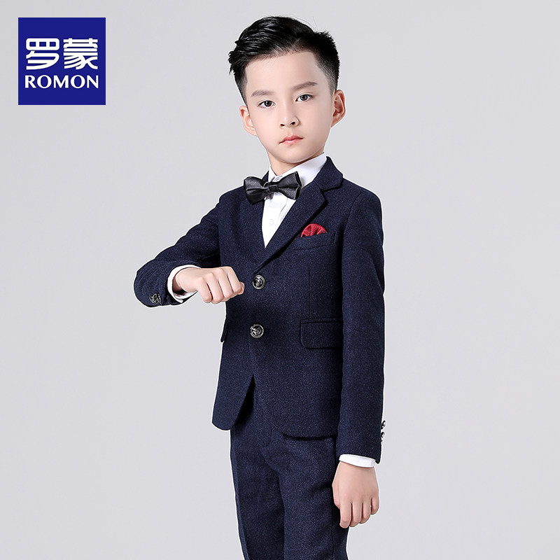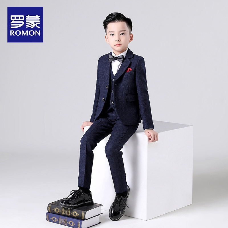 罗蒙儿童西装套装男童模特英伦走秀主持人花童中大童钢琴演出礼服