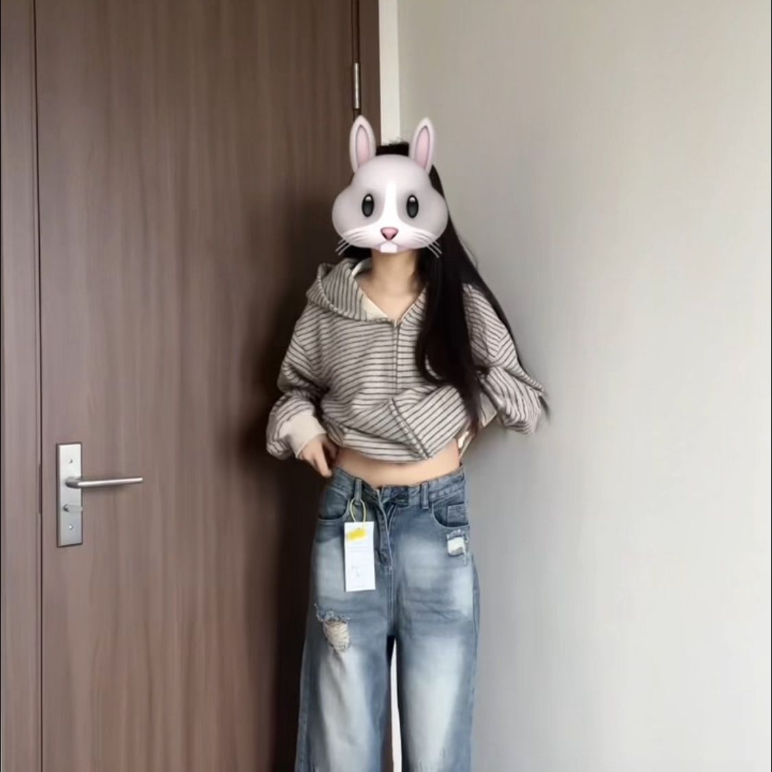 时尚条纹连帽卫衣外套女春季2025新款韩版宽松休闲减龄长袖上衣潮