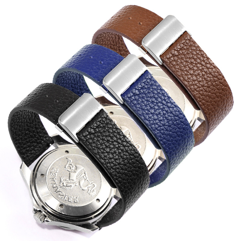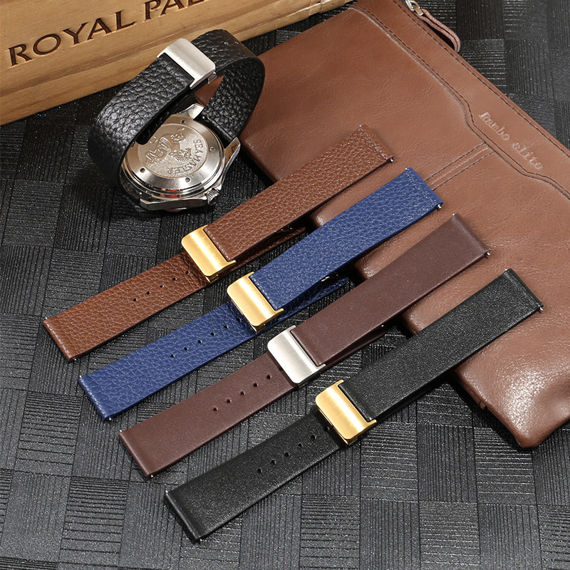 手表带男女真皮折叠扣适配天梭浪琴西铁城CK卡西欧dw超薄柔软表链