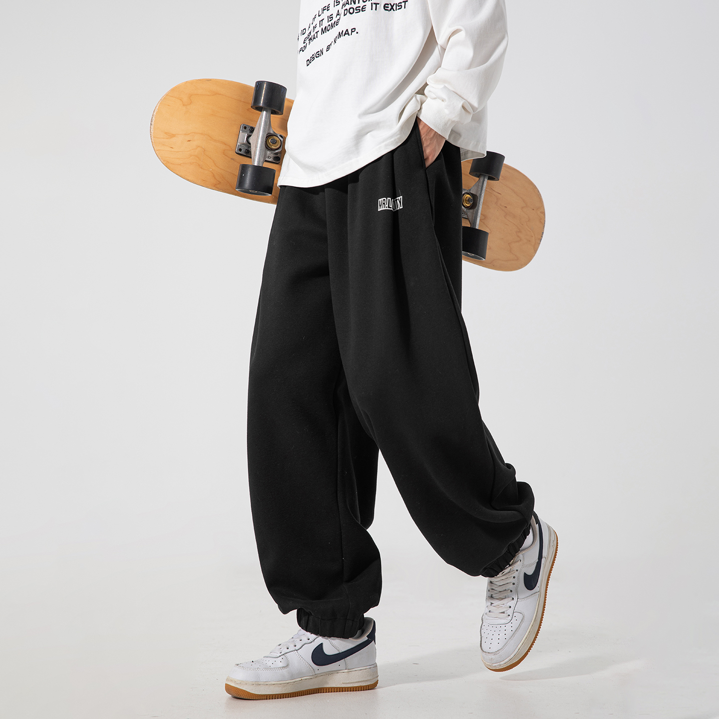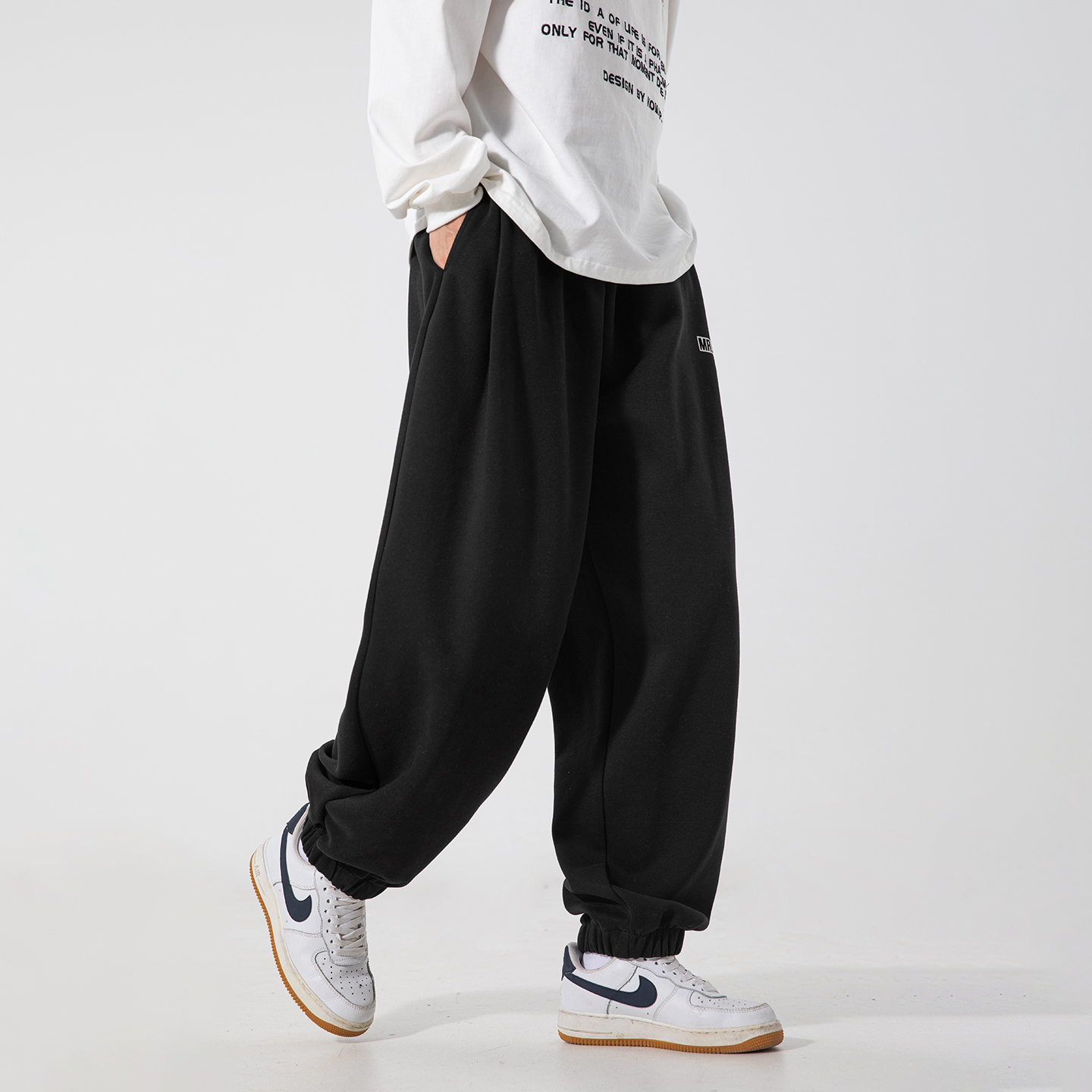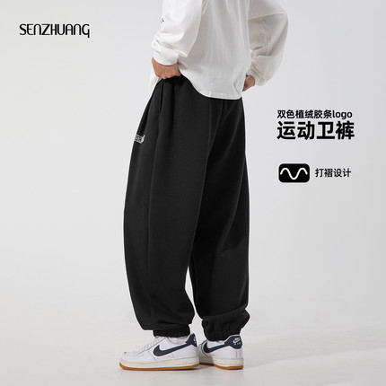 男士黑色运动卫裤男款2025新款秋季束脚裤子logo宽松大码休闲裤潮