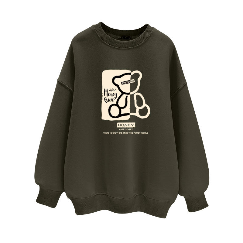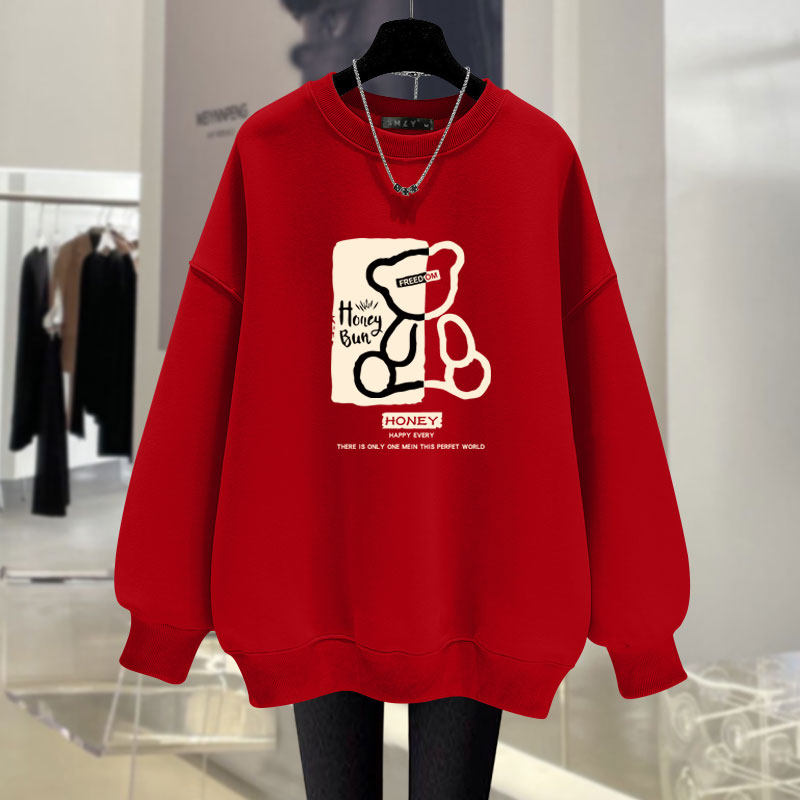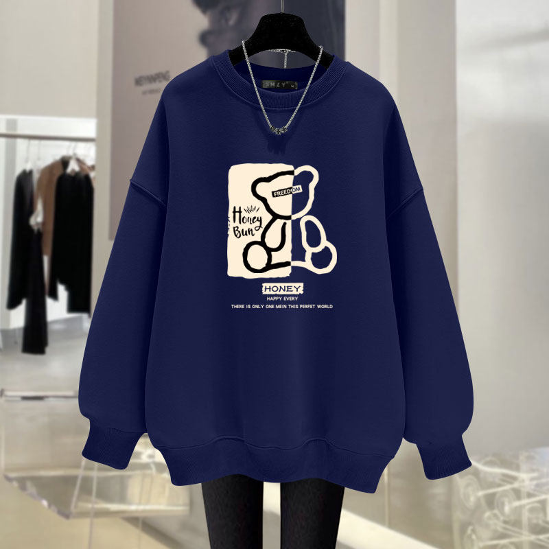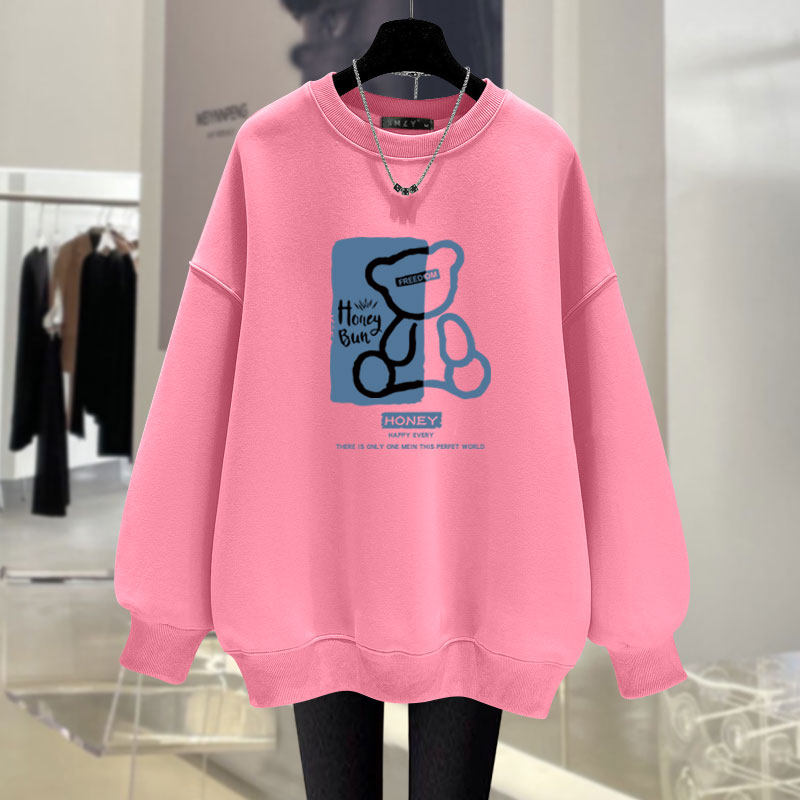 2025春秋冬季新款设计感小熊中长款加绒加厚宽松套头圆领卫衣女潮