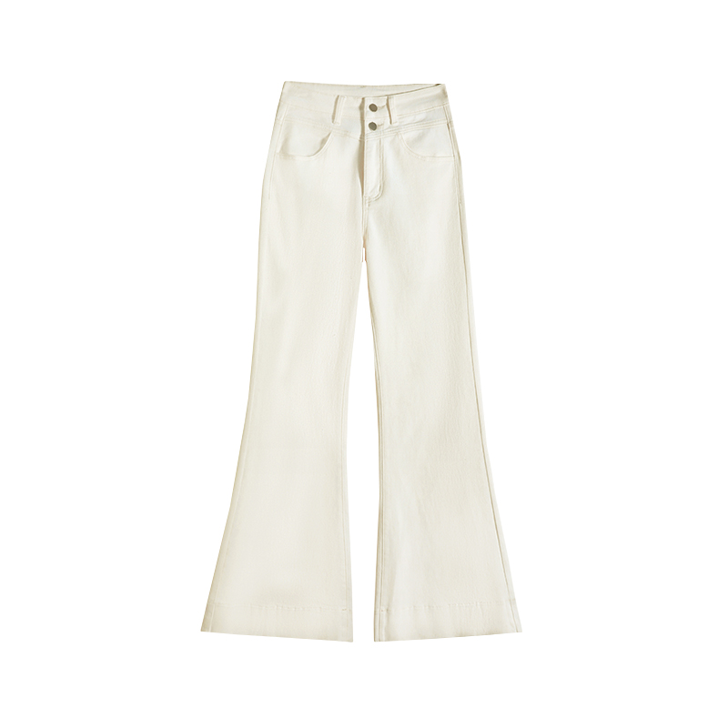 米白色弹力大喇叭阔腿牛仔裤宽松
