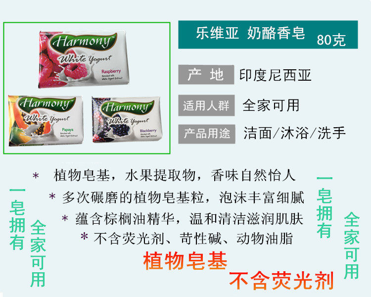 包邮印尼进口乐维亚奶酪香皂3块洁面沐浴黑莓木瓜覆盆子温和清洁