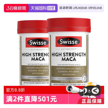 【自营】Swisse斯维诗男性高浓度玛卡片玛咖活力秘鲁60片*2瓶有机