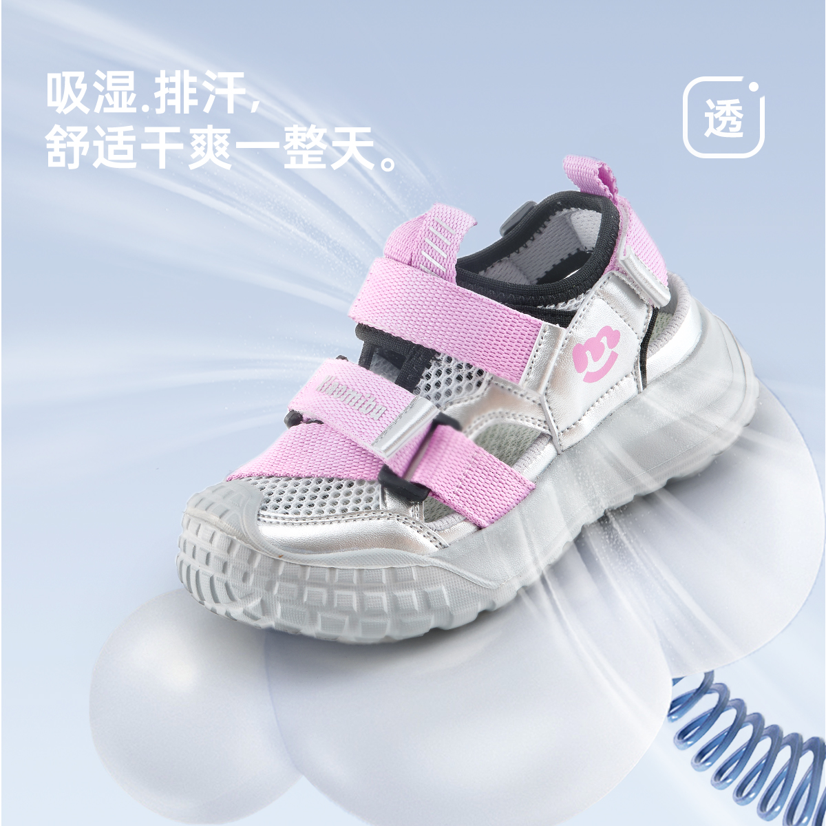 小米步女童包头凉鞋2025夏季款镂空休闲鞋儿童沙滩鞋男童中大童鞋