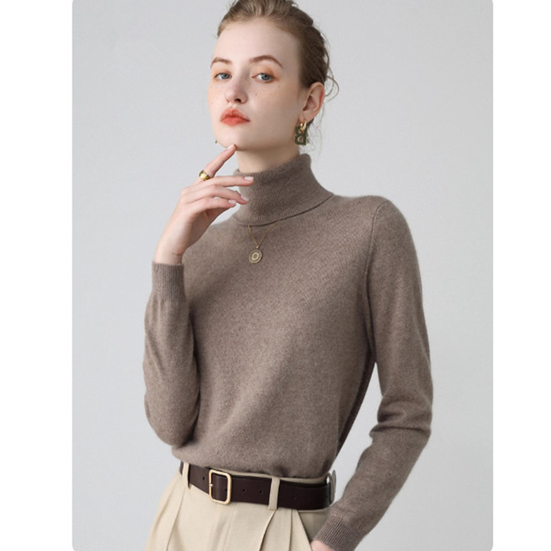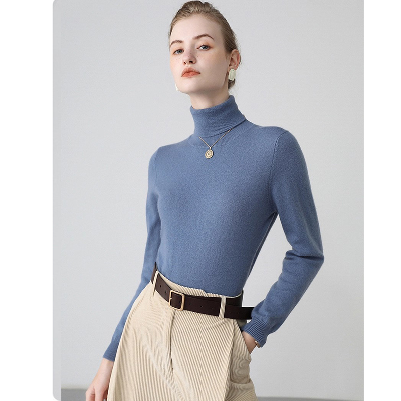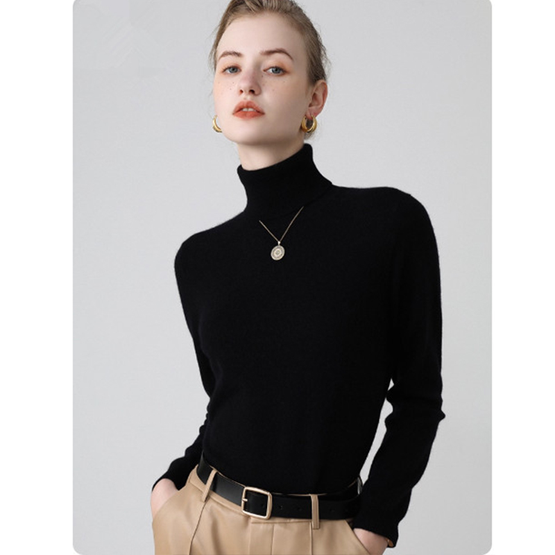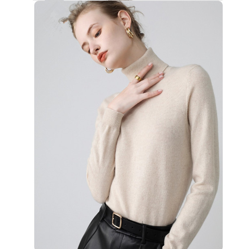 高领针织衫女加厚秋冬新款纯色套头宽松上衣保暖针织打底毛衣
