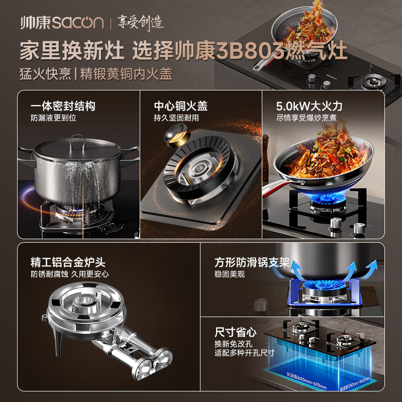 帅康燃气灶3B803家用煤气灶天然气液化气猛火不锈钢双灶嵌入式