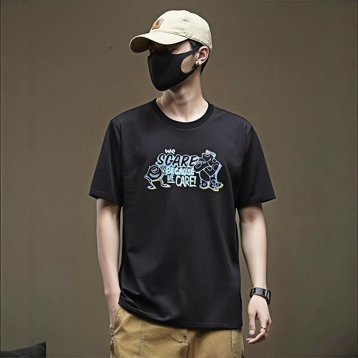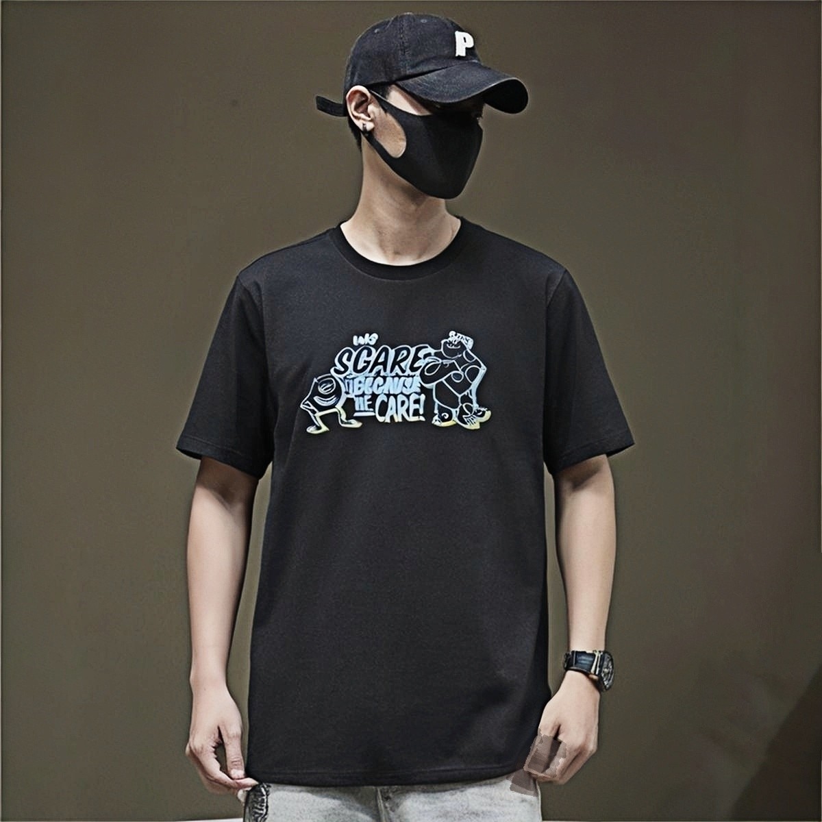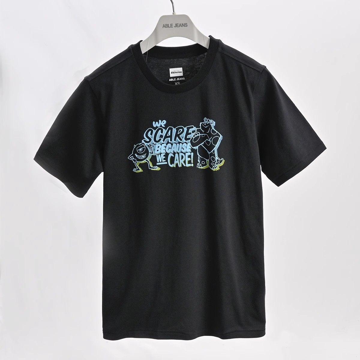 怪物学院联名ABLEJEANS短袖T恤男女纯棉休闲圆领夏季黑色上衣潮流