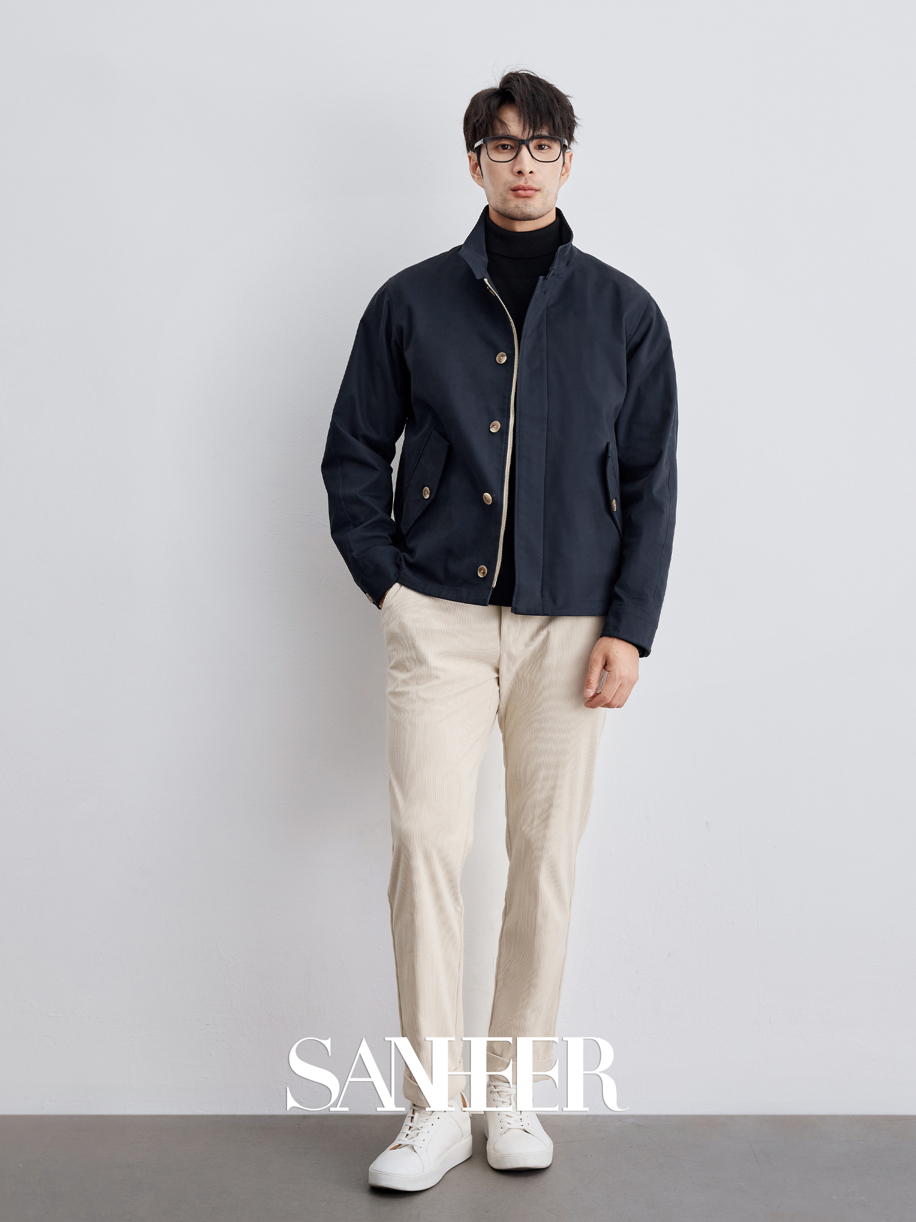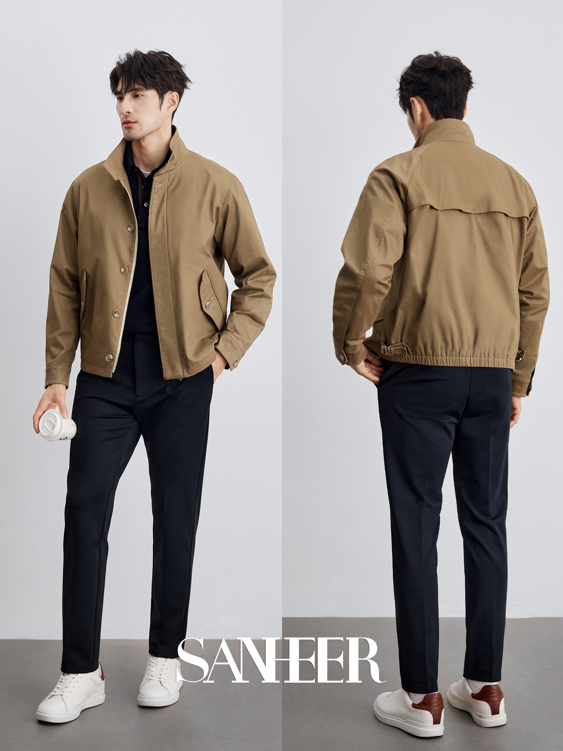 商务绅士 高档棉质磨毛面料 色织格子里布立领夹克外套男 DAJ361