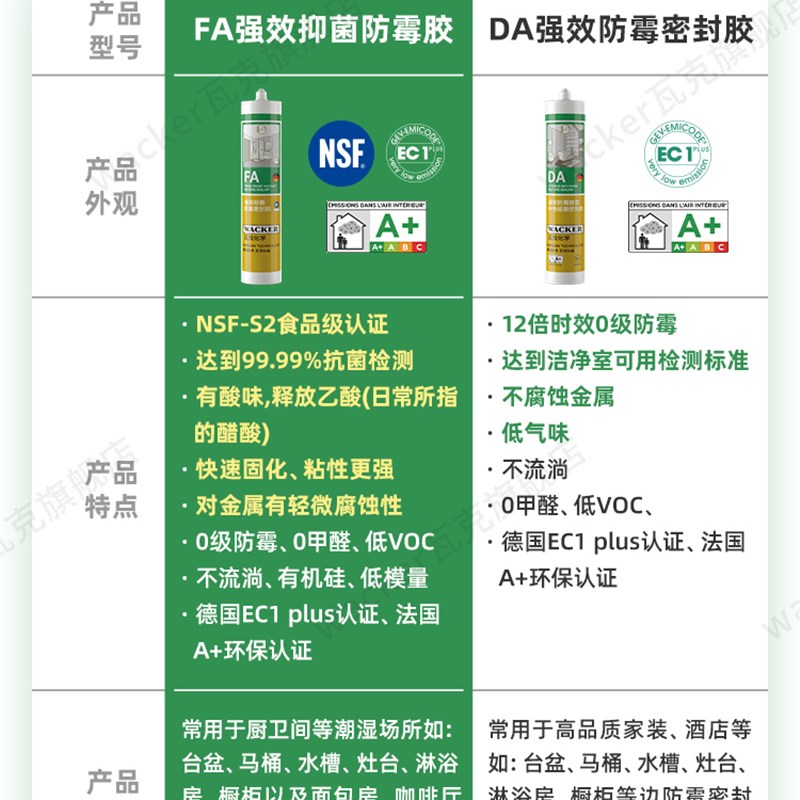 德国品牌瓦克DA防霉防水厨卫玻璃胶强力透明硅胶密封胶美容胶白色