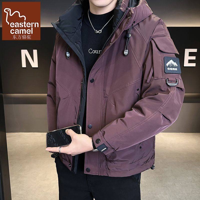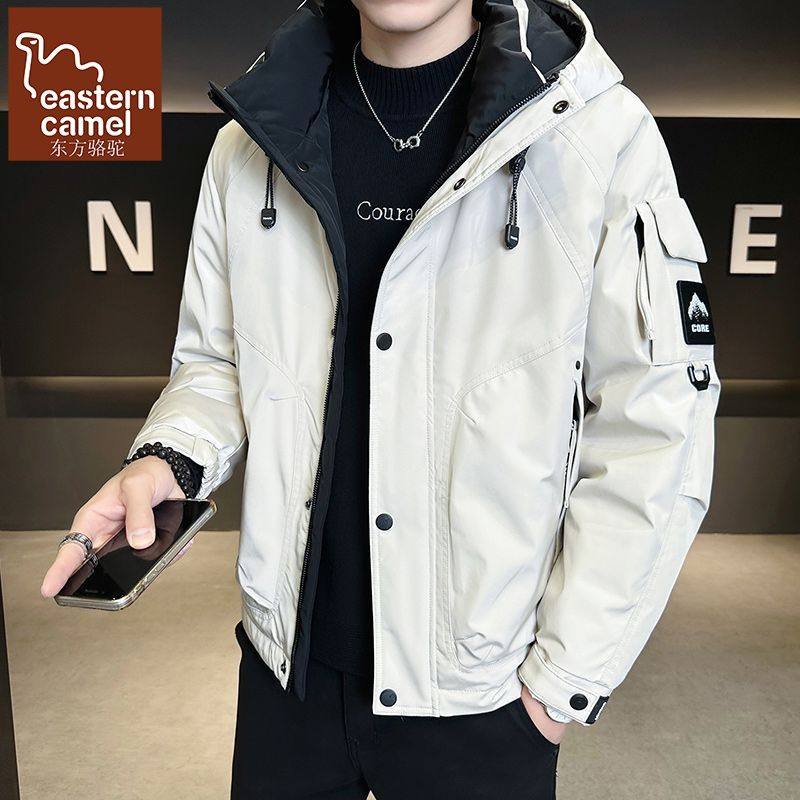 工装痞帅连帽羽绒服外套男潮牌美式短款高级感加厚保暖户外上衣冬