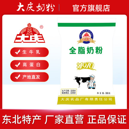 【新品】大庆全脂奶粉老人青少年营养成人纯牛奶粉生牛乳300g袋装