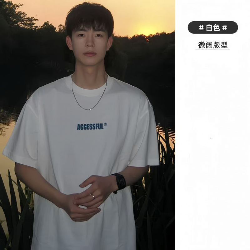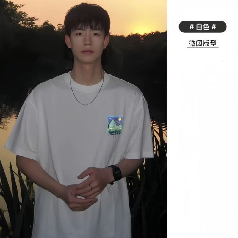 短袖t恤男2025夏季新款五分袖t恤男装百搭港风潮牌ins半袖