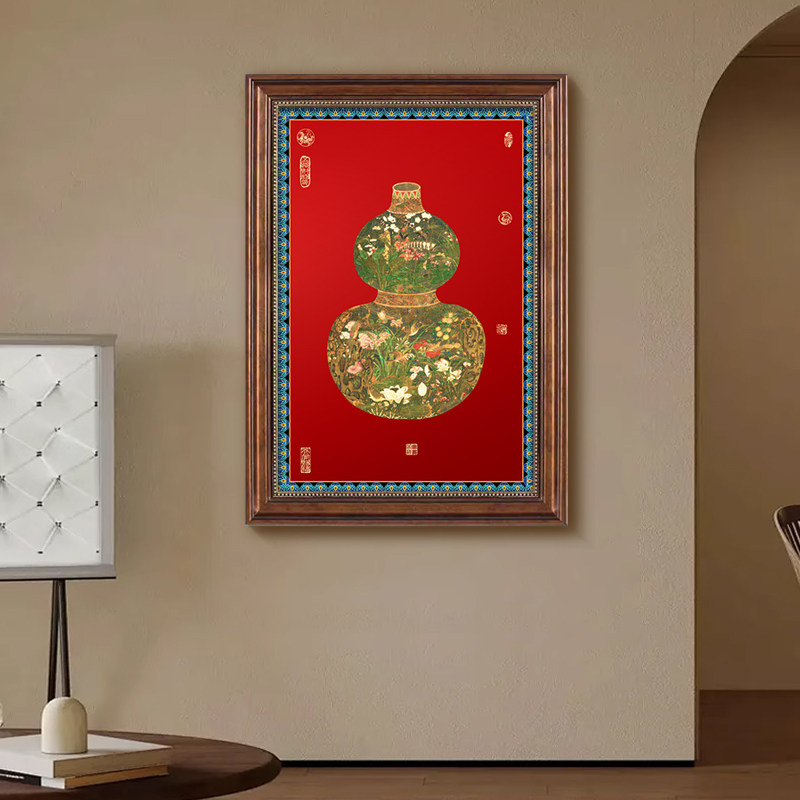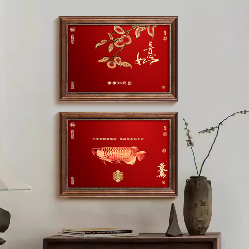 中国风客厅装饰画新中式玄关餐厅客厅法式复古高级感花开富贵挂画