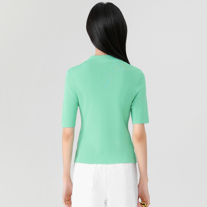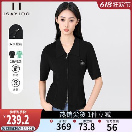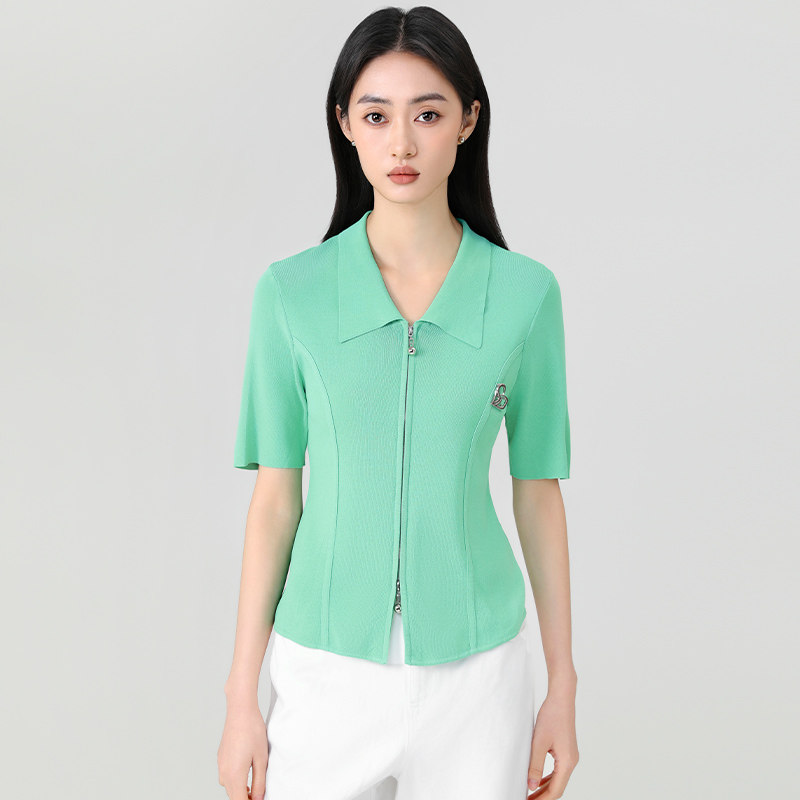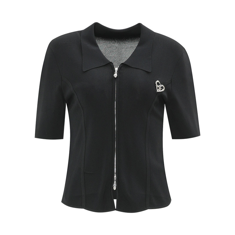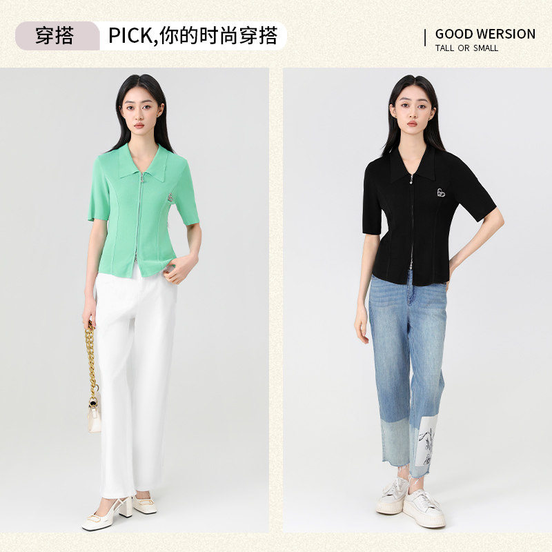 傲丝度夏季短袖针织衫2025女装新款小个子双拉链T恤毛衣开衫上衣