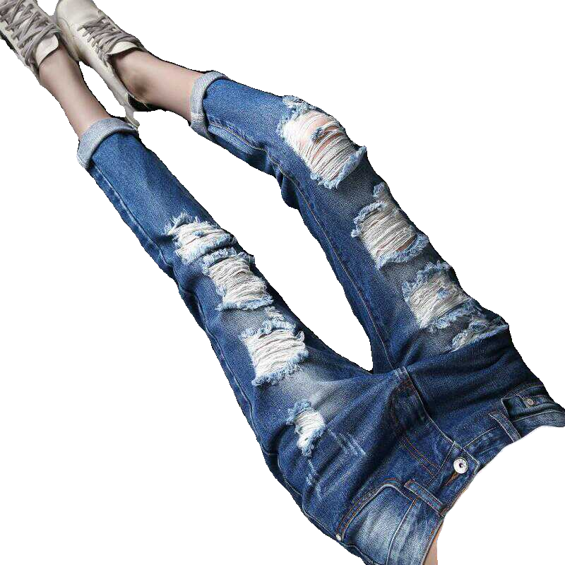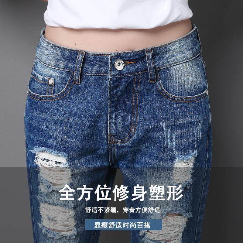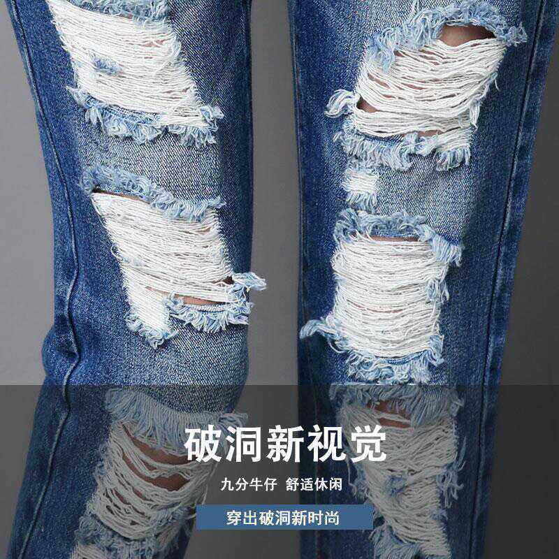 破洞bf乞丐夏季牛仔裤哈伦九分裤