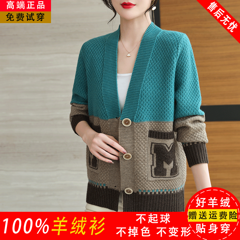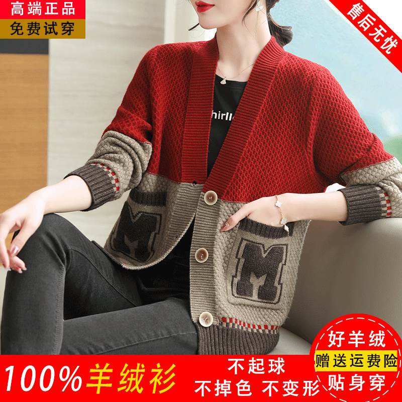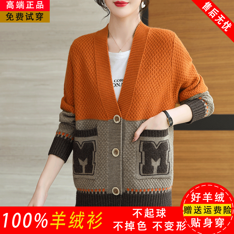 鄂尔多斯市羊绒毛衣外套女士春秋季洋气宽松大码中老年妈妈装开衫
