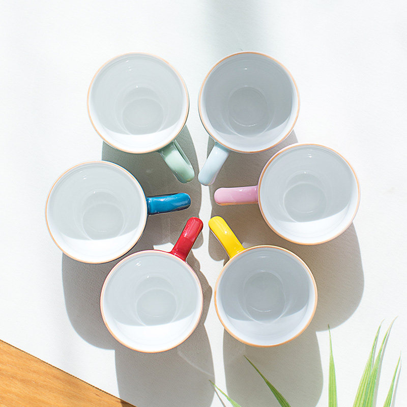 青瓷防烫带手柄茶杯隔热有耳喝茶主人杯陶瓷功夫茶具手工品茗杯