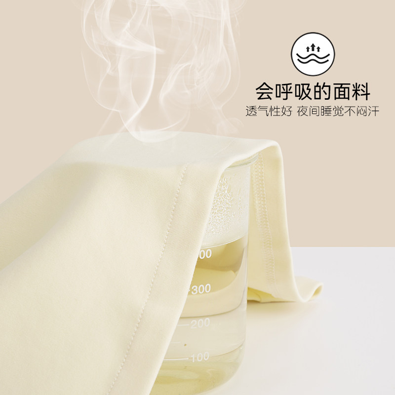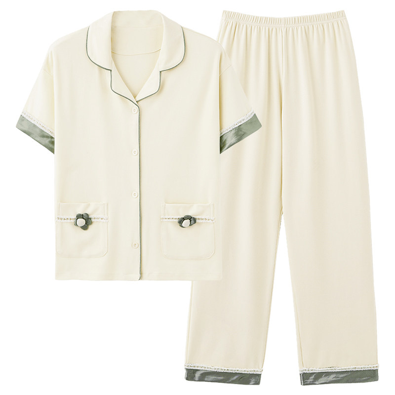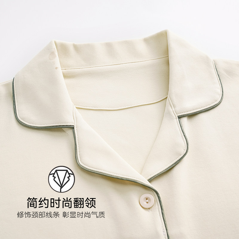 芬腾可安睡衣女夏季纯棉薄款短袖长裤两件套装纯色简约大码家居服