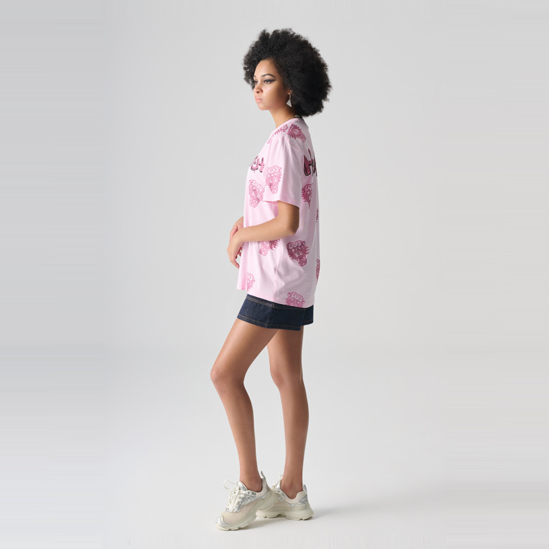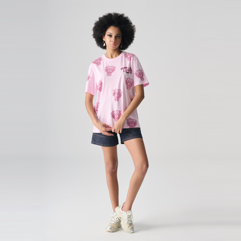 TCH夏季新款轻奢潮流烫钻粉色短袖宽松时尚T恤女T72B106023
