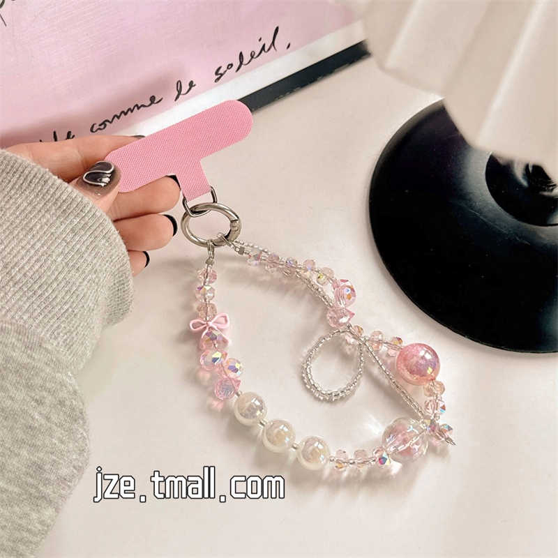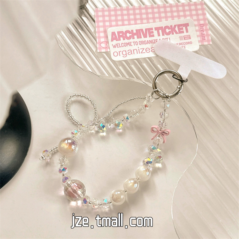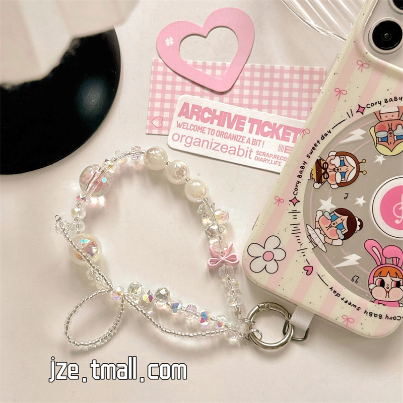 jze超好看水晶串珠蝴蝶结手机链挂饰手工串珠手腕链条ccd相机包包钥匙腕带防丢挂件挂链爆款女高档精致手链壳